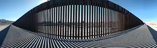 The Mexico–United States barrier (Spanish: barrera México–Estados Unidos), also known as the border wall, is a series of vertical barriers along the Mexico–United States border intended to reduce illegal immigration to the United States from Mexico.[1] The barrier is not a continuous structure but a series of obstructions variously classified as "fences" or "walls".[2]