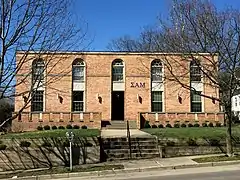 The foundations for Miami University were first laid by an Act of Congress signed by President George Washington, stating an academy should be Northwest of the Ohio River in the Miami Valley.[19] The land was within the Symmes Purchase; Judge John Cleves Symmes, the land's owner, purchased it from the government with the stipulation that he set aside land for an academy.[20] Congress granted one township to be in the District of Cincinnati to the Ohio General Assembly for the purposes of building a college, two days after Ohio was granted statehood in 1803; if no suitable location could be provided in the Symmes Purchase, Congress pledged to give federal lands to the legislature after a five-year period. The Ohio Legislature appointed three surveyors in August of the same year to search for a suitable township, and they selected a township off of Four Mile Creek.[20] The Legislature passed "An Act to Establish the Miami University" on February 2, 1809, and the state created a board of trustees; this is cited as the founding of Miami University.[20] The township originally granted to the university was known as the "College Township," and was renamed Oxford, Ohio, in 1810.