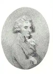 Michael Kelly (25 December[1] 1762 – 9 October 1826) was an Irish singer (tenor), composer and theatrical manager who made an international career of importance in musical history.[2] One of the leading figures in British musical theatre around the turn of the nineteenth century, and a close associate of Richard Sheridan's, he had been a friend of Mozart and Paisiello, and created roles in operas of both. With his friend Nancy Storace, he was one of the first singers in that age from Britain and Ireland to make a front-rank reputation in Italy and Austria. In Italy he was also known as O'Kelly[3] or even Signor Ochelli.[4] Although the primary source for his life is his Reminiscences, it has been said 'Any statement of Kelly's is immediately suspect.'[5]