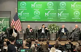 The center retains a number of scholars for publications, debates, and public forums including intelligence and foreign policy professionals, journalists, and politicians. The events are frequently broadcast nationally on the C-SPAN Network, and soundbytes and quotes from discussions have appeared frequently in national media outlets.[3] Previous speakers and hosts have included a range of federal agency leaders, including former Directors of Central Intelligence Gates, Woolsey, Deutch, Tenet, McLaughlin, and Goss, Director of National Intelligence James Clapper as well as former Directors of the Central Intelligence Agency Hayden, Morell, Petraeus, and Brennan.[4][5][6][7][8]