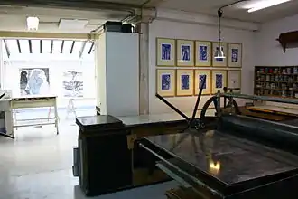 Michael Woolworth (born in 1960) is a master printer of American origin, living and working in Paris. He makes original editions with contemporary artists. His atelier specializes exclusively in printing techniques on hand presses: stone lithography, woodcut, monotype, linocut, etching and multiples.