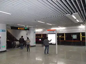 Middle Longhua Road (Chinese: 龙华中路), formerly Chuanchang Road, is an interchange station between Line 7 and Line 12 of the Shanghai Metro located in Xuhui District. It was known during construction as Pujiang Nanpu Station. It entered operation on December 5, 2009 with the official name Chuanchang Road station. In December 2012, it was officially renamed to Middle Longhua Road Station. Line 12 services arrived on 19 December 2015, at which point it became an interchange station.