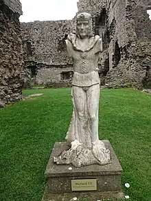 Richard ascended to the throne as King Richard III, but spent little or no time at Middleham in his two-year reign. After Richard's death at Bosworth in 1485 the castle was seized by Henry VII and remained in royal hands until the reign of James I, when it was sold.[5] During the reign of Elizabeth I, the castle was proposed for full demolition by Lord Huntingdon and eventual conversion into a Manor House. A letter was written by Huntingdon to the Lord Treasurer outlining the plan and its possible use by the Queen when on her royal duties.[6] The castle fell into disuse and disrepair during the 17th century.[3] In 1644, a parliamentary Committee sitting in Yorkshire ordered that it was "untenable and no garrison should be kept there". Later still, some of the castle's walls were blown away and the stones of the castle became a public quarry by which many of the buildings in Middleham were created from.[7] It was garrisoned during the Civil War in 1654 and 1655, when it was host to thirty men and capable of housing prisoners. There is no record of action at the site nor was it put under siege.[8]