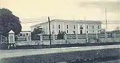 In this same lot stood, since the times of Spanish rule, first the Barracks of the Alfonso XII Regiment until 1898, then the district court and jail until the October 11, 1918 earthquake when the old brick building was destroyed.[5] The barracks were built in 1848; they were large and had two floors. They could house a battalion of 800 men and its officers. The building's brick roof had 30 lightning rods.[6]