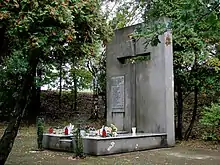 During the subsequent German occupation, the Polish population was subjected to mass arrests, murder, deportations to Nazi concentration camps, expulsions and forced conscriptions to the Wehrmacht.[10] Already in early September 1939, the Germans carried out mass arrests and executions of former Polish insurgents of the Silesian Uprisings and local Polish activists.[11] Among the victims of massacres carried out on 5, 7 and 17 September 1939 were Polish workers, miners, craftsmen, a farmer, a court employee, a policeman, a merchant, and a local official.[12] The Germans also carried out manhunts of Polish insurgents who were hiding in the forest between Mikołów and Tychy,[13] and destroyed the book collection of the pre-war Polish library.[8]