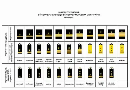 The new insignia of the Ukrainian Naval Force (from admiral to junior lieutenant) |