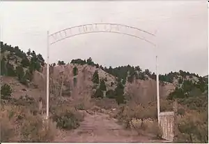 The Utah and Pleasant Valley Railroad, a predecessor of the Denver and Rio Grande Western, was building through Spanish Fork Canyon in 1875–1879.[2] Sometime during this period the railroad established three sawmills at Mill Fork to process railroad ties.[3] A large water tower and a small reservoir were constructed in 1888,[4] soon to be joined by a general store and housing for railroad employees. A helper engine was also stationed here. The population grew as high as 250.[3]
