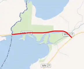 Highway 117 serves as a short east–west connector route between Lake Traverse at the Minnesota / South Dakota state line and Minnesota State Highway 27.
