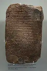 The protopalatial period lasted from approximately 1900 until 1750, or in the relative chronology MM IB through MM IIB.[13] The major palaces' completion occurred during this time-frame, distinguished by distinct ashlar masonry with marks created by the responsible masons. The protopalatial phase also saw the emergence of both the Linear A and Cretan hieroglyphic writing systems, although they likely initially saw use as early as the end of the previous period.[13][12]