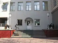 In accordance with a resolution of the Council of Ministers of the USSR on 21 May 1952, the Suvorov Military School was opened in Minsk in 1953. In 1921, the Suvorov Military School building housed infantry courses for the United Belarusian Military School.[2] The first set of cadets were assembled in September 1953. Most of the original pupils were orphaned children whose parents died in the Second World War. The day of the school is considered 6 November, which represents the day in 1953 when the school was presented with its first colours. During this ceremony, the school colour was presented by Colonel General Nikandr Chibisov on behalf of Defence Minister Bulganin.[3] On its 60th anniversary in 2013, a film called "the Honor of anyone" as released for the school.[4]