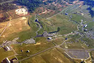 The Mississippi River Basin Model Waterways Experiment Station, located near Clinton, Mississippi, was a large-scale hydraulic model of the entire Mississippi River basin, covering an area of 200 acres.[1] The model was built from 1943 to 1966 and in operation from 1949 until 1973. By comparison, the better known San Francisco Bay Model covers 1.5 acres and the Chesapeake Bay Model covers 8 acres.[2] The model is now derelict, but open to the public within Buddy Butts Park, Jackson.[3]