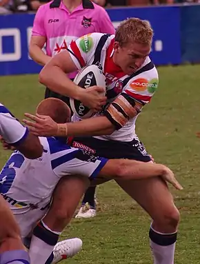In round 4 of the 2019 NRL season, Aubusson scored 2 tries as the Roosters defeated Brisbane 36–4 at the Sydney Cricket Ground.[6] On 19 August 2019, Aubusson signed a one-year contract extension with the Roosters, through to the end of 2020.[7] Aubusson played in the club's 2019 NRL Grand Final victory over Canberra at ANZ Stadium. Aubusson only played 12 minutes of the game before he was taken from the field with a knee injury. It was Aubusson's third premiership victory as a player.[8][9] In round 13 of the 2020 NRL season, Aubusson became the third Sydney Roosters player to play 300 games. Aubusson celebrated by scoring a try in his team's 24–16 victory over St. George at WIN Stadium.[10] On 24 August 2020, Aubusson announced his retirement from rugby league for the end of the 2020 season.