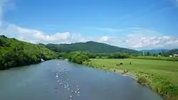 The Mitsuishi River originates at Mount Setaushi (859 kilometers (534 mi))[1] in the Hidaka Mountains and flows roughly south to southwest. The river flows into a reservoir at the Mitsuishi Dam. The Mitsuishi Dam was completed on the river in 1992 to prevent the flow of earth and sand from the Pirashike area (ピラシケ地区, Pirashike-chiku), which is prone to landslides.[1] It then continues until it reaches the Pacific Ocean at Mitsuishi in Shinhidaka, Hokkaidō.[2]