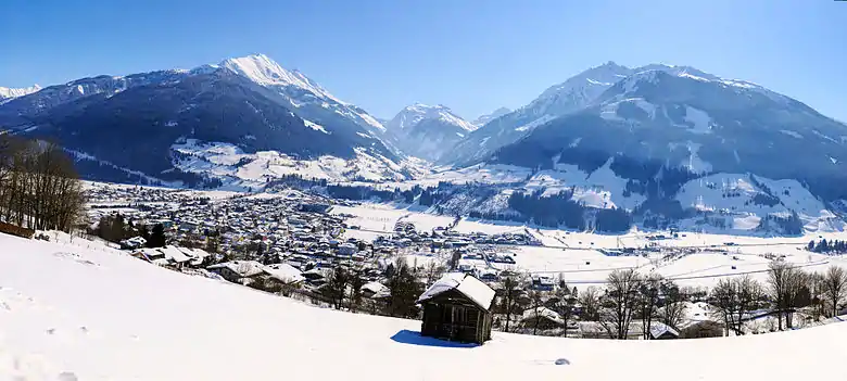 It has traffic links running east to west and north to south. The Felbertauern road tunnel runs south through the Hohe Tauern at an elevation of about 1630 m, providing a connection with Lienz in East Tyrol. To the north lies the Thurn Pass at an elevation of 1274 m, providing a connection with Kitzbühel and Tyrol.