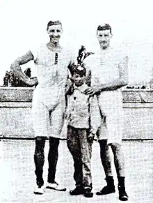 François Brandt (left), Roelof Klein and their coxswain, an unknown French boy, at the 1900 Olympics