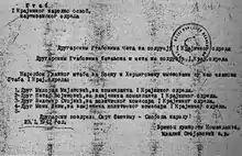 Stojanović left Grmeč and went to Skender Vakuf in northwest central Bosnia to participate in the first regional conference of the KPJ in Bosanska Krajina,[75] which was held from 21 to 23 February 1942.[80] In the Partisan territorial structure, the military-political region of Bosanska Krajina included central Bosnia.[49] At the Skender Vakuf conference, presided over by Pucar, Stojanović and Karabegović,[81] the participants analysed the military and political situation in the region. The increase of Chetnik influence—which was strongest in southeastern Bosanska Krajina and northwest central Bosnia in the zones of responsibility of the 3rd and 4th Krajina Detachments—was a big problem for the KPJ. A number of Partisans of these detachments joined the Chetnik side.[82][83] Only in Kozara had Chetnik influence been held at bay.[63][72] At the conference, Stojanović was appointed to lead a unified command of Partisan forces in Bosanska Krajina,[80] but on 24 February he was replaced with Kosta Nađ.[84][85] The unified command was named the Operational Headquarters for Bosanska Krajina, and Stojanović became its chief of staff and deputy commander.[82][86][87][88]