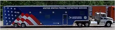 The Mobile Mail-Screening Station was designed by the United States Postal Services' Technical Services Division.[1] Each unit is a 53-foot (16 m) tractor and trailer combination containing eight compartmentalized areas that house specialized mail screening equipment. This includes: the GID-3 ambient air monitoring system for the detection of industrial toxins and chemical warfare agents, the HI-SCAN 7555i X-ray Inspection System to scan packages and letters for the presence of improvised explosive devices (IEDs), Smiths Detection HazMatID for the identification of "unknown powders, liquids, pastes and gels" and the SABRE FR air filtration table for the detection of toxic industrial chemicals.[1][2]
