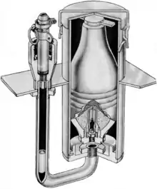 The Mle 1939 (Model 1939) was a French bouncing anti-personnel mine used at the start of the Second World War, it was developed largely in response to the German S-mine bounding mine.[1] It saw very little service before the fall of France. The plans escaped to the US via Major Pierre Delalande, a member of the French Corps of Engineers, and were used as the basis for the American M2 bounding mine which saw wider service during the war but was considered largely ineffective.[2] The M2 mine was replaced almost immediately afterwards with the M16 bounding mine, an almost exact copy of the German S-mine.[2] The French also later produced a copy of the S-mine, the Mle 1951 mine.[3]