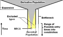 In 1987, PCR-amplification of mtDNA was first used to determine sequences.[15] In 1991 Vigilante et al. published the seminal work on mtDNA phylogeny implicating sub-saharan Africa as the place of humans most recent common ancestors for all mtDNAs.[16] The war between out-of-Africa and multiregionalism, already simmering with the critiques of Allan Templeton, soon escalated with the paleoanthropologist, like Milford Wolpoff, getting involved.[17][18][19] In 1995, F. Ayala published his critical Science article "The Myth about Eve", which relied on HLA-DR sequence.[20] At the time, however Ayala was not aware of rapid evolution of HLA loci via recombinatory process. In 1996, Parham and Ohta published their finds on the rapid evolution of HLA by short-distance recombination ('gene conversion' or 'abortive recombination'), weakening Ayala's claim (Parham had actually written a review a year earlier, but this had gone unnoticed).[21][22] A stream of papers would follow from both sides, many with highly flawed methods and sampling. One of the more interesting was Harris and Hey, 1998 which showed that the TMCRA (time to most recent common ancestor) for the PDHA1 gene was well in excess of 1 million years. Given a ploidy at this locus of 1.5 (3 fold higher than mtDNA) the TMRCA was more than double the expectation. While this falls into the 'fixation curve' of 1.5 ploidy (averaging 2 female and 1 male) the suggested age of 1.8 my is close a significantly deviant p-value for the population size, possibly indicating that the human population shrank or split off of another population.[23] Oddly, the next X-linked loci they examined, Factor IX, showed a TMRCA of less than 300,000 years.[24]