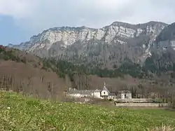 The monastery is about 7 kilometres (4.3 mi) from Voreppe along a winding forest road.[1] It is located on a plateau overlooking Voreppe at an altitude of 940 metres (3,080 ft), which is often snow-covered in winter.[2] The monastery is set in a beautiful location in the Chartreuse Mountains. It has a cemetery and a Romanesque church.[3]