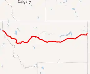 - Montana Department of Transportation (2019). Montana Official Highway Map (PDF) (Map). Helena: Montana Department of Transportation. §§ B-1, C-1, C-2, D-2, E-2, E-3, E-4, D-4, C-5, D-5, D-6, D-7, D-8, D-9, D-10, D-11, C-11, C-12. Retrieved January 2, 2021.