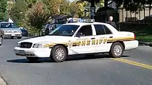 The office is headed by the sheriff, who has been elected every four years since the 1920s. The sheriff currently is Darren M. Popkin, a Democrat.[17] Popkin succeeded Raymond M. Kight as sheriff,[18] who retired in December 2010.[19] Popkin's current term ends in 2018,[20] when he will be eligible for reelection.[21]