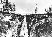 The Montlake Cut is the easternmost section of the Lake Washington Ship Canal, which passes through the city of Seattle, linking Lake Washington to Puget Sound. It is approximately 2,500 feet (760 m) long and 350 feet (110 m) wide. The center channel is 100 feet (30 m) wide and 30 feet (9.1 m) deep. The path along the cut was designated a National Recreation Trail as Montlake Cut National Waterside in 1971.[1]
