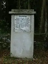 The ruins of the Moore family's large stately home, Moore Hall, lie on Muckloon Hill overlooking Lough Carra.[3] The house was designed by John Roberts, an architect from Waterford who also designed Tyrone House in County Galway, and both of Waterford's cathedrals. Several members of the Moore family played major parts in the social, cultural and political history of Ireland from the end of the eighteenth century to the early twentieth century. The house was burned down in 1923 by anti-Treaty irregular forces during the Irish Civil War as Maurice Moore was viewed as pro-Treaty.[4]