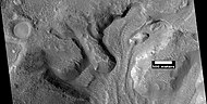 Glacier coming out of valley on the rim, as seen by HiRISE under HiWish program.