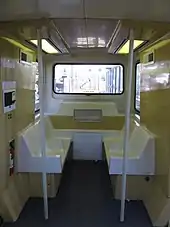 The vehicles have automatic doors on both sides that open to the platform, and are accessible for people with mobility disabilities. The vehicles are designed for 20 passengers, with four seats arranged in a "U" on each end and four stanchions in the center of the vehicle for twelve standees. A yearly event called the PRT Cram takes place in which student organizations try to pack as many individuals as possible inside a modified PRT vehicle. The record of 97 was set in 2000.[17]