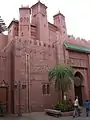 The Twilight Zone Tower of Terror in Disney's Hollywood Studios can be seen at an angle from the Moroccan pavilion, and the top of the Tower is designed so it blends in with the Moroccan architecture.[5]