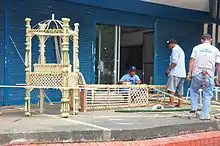 Morong is also known for its "Kayas Kawayan". The town is the first and is known to make Baluwartes, an art made of bamboo, with intricate designs. Usually used during special events such as weddings, cordero, and fiestas, its usually found in the entrance gate of the event. During cordero, the lamb- which is made of cake, sweet potatoes and potatoes, is placed and processioned around the town until the church in a small kayas kawayan, carried by men, adorned with flowers. Now this art is being copied by the nearby towns.