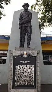 The first Filipino to die in World War I was Private Tomas Mateo Claudio, who served with the U.S. Marine Corps as part of the American Expeditionary Forces to Europe. He died in the Battle of Château Thierry in France on June 29, 1918. The Tomas Claudio Memorial College in Morong, which was founded in 1950, was named in his honor. The main street of the town was also named in his honor.