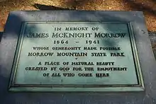 Development of the park began in the 1930s through the efforts of a local committee interested in establishing a state park in the area. By 1937, more than 3,000 acres of land had been acquired, much of it donated by the citizens of Stanly County. Morrow Mountain is named for one such citizen of Scotch-Irish descent, James McKnight Morrow, who donated more than 1000 acres to the State on June 29, 1920.[5] The park was opened to the public in the summer of 1939.