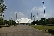 Moshood Abiola National Stadium (formerly known as National Stadium, Abuja) is a multipurpose national sports stadium located in Abuja, in the Federal Capital Territory of Nigeria. The stadium serves as a home to the Nigerian national football team, as well as a center for various social, cultural, and religious events. The Federal Government of Nigeria approved the contract for the construction of the National Stadium complex and Games Village on 18 July 2000. The stadium was constructed to host the 8th All Africa Games which took place in October 2003. On 12 June 2019, President Muhammadu Buhari announced the change of the name of the National Stadium, Abuja to Moshood Abiola National Stadium. President Buhari made this pronouncement during his speech at the Democracy Day celebration on Wednesday at the Eagle Square, Abuja.[2]