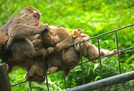 Visitors to Mount Emei will likely see dozens of Tibetan macaques who can often be viewed taking food from tourists. Local merchants sell nuts for tourists to feed the monkeys. Other featured animals includes Rana adenopleura, Vibrissaphora liui and Pheretima praepinguis