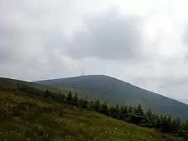 Mount Leinster (Irish: Stua Laighean) is a 794-metre-high (2,605 ft) mountain in the Republic of Ireland. It straddles the border between Counties Carlow and Wexford, in the province of Leinster. It is the fifth-highest mountain in Leinster after Lugnaquilla 925 metres (3,035 ft), Mullaghcleevaun 849 metres (2,785 ft), Tonelagee 817 metres (2,680 ft), and Cloghernagh 800 metres (2,600 ft), and the highest of the Blackstairs Mountains. A 2RN transmission site tops the peak with a mast height of 122 metres (400 ft).