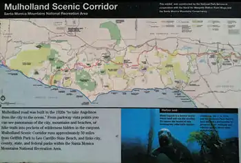 Only the segment of Mulholland Highway between Pacific Coast Highway and Kanan Dume Road, and through Malibu Creek State Park between Cornell Road and Las Virgenes Road, is officially recognized by the California Department of Transportation as under the California Scenic Highway System,[1] meaning that it is a substantial section of highway passing through a "memorable landscape" with no "visual intrusions", where the potential designation has gained popular favor with the community.[2]