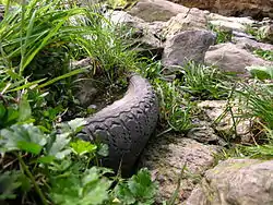 The tall ancient manna gum forests near Whitefriars College are home to ducks (who nest on the tops of old stags) crimson rosellas, galahs and other parrots (who nest in old hollows), rare large powerful owls and rainbow lorikeets. Pied cormorants and night herons cruise the creek pools. Rakali and the occasional platypus, fish for galaxias, gudgeon and yabbies. There are signs of wombat diggings on the hill face but they are rarely seen. The occasional swamp wallaby and eastern grey kangaroo visit the gorge. In warm weather skinks, blue tongue lizards and copperhead snakes can be seen. Other rarely seen species include marbled geckos and white-lipped snakes.[2]