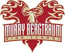 Murry Bergtraum High School for Business Careers was still under construction in 1975 while the first class of freshmen were attending classes at Pace University awaiting the completion of the new high school. While at the Pace campus, an art instructor held a school logo contest. Many designs were submitted by the students. Ultimately the winner chosen by the staff was a student named Norberto Feliciano. The winning school emblem is circular in design with a triangle in the center that represents the schools aerial view shape. The name of the school is within double circles, and the school initials placed within the triangle. Olive branches were placed within the logo as a sign of peace as also seen in the flag of the United Nations. The logo is used on letter heads, notebooks, T-shirts, sweatshirts, shorts, team uniforms, and other school-branded items.