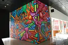 One temporary exhibit was in the fine arts, featuring the work of artist Rosendo Vega. He is originally from Guerrero but has lived in Oaxaca over a decade and his work reflects the Oaxaca worldview according to Carlomagno Pedro Martínez.[13] Some of the museum's temporary exhibits link Oaxaca's crafts with those in the rest of Mexico. In 2010, the museum held an exhibit on marionettes, with samples from parts of Mexico as well as Oaxaca, for a collection of about 30 puppets. The display was created for Children's Month with the cooperation of the marionette performing company called “La bruja.”[14] In 2011, the museum sponsored an exhibition called “Extensiones” which was a collection of works by young artists from the neighboring state Puebla, presenting their concept of society.[9]