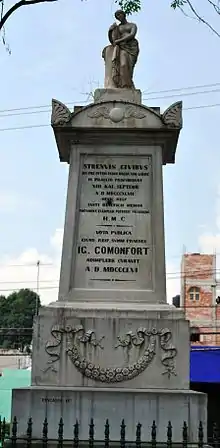The Mexican Army dislocated the monks living here during the Mexican-American War in order to defend Mexico City from the invading U.S. Army. The Mexicans fortified the building, which included building the parapet.[4] At the time, the complex was far outside the city limits. On 20 August 1847, Battle of Churubusco was fought. When the Mexicans ran out of ammunition, the battle turned to hand-to-hand fighting. When the Mexicans were defeated U.S. General David Twiggs asked General Pedro María de Anaya to surrender his ammunition. The reported response of Anaya is "If there was any, you wouldn't be here."[2] This is also the site where Saint Patrick's Battalion, an Irish regiment originally aligned the U.S., switched sides and fought with the Mexicans to defend Mexico City. A plaque honoring them is placed at the main entrance.[1] In 1869, President Benito Juárez declared the site a national monument in honor of the battle,[3] which was reaffirmed in 1933.[4] However, this did not turn it into a museum. From 1876 to 1914, it served as a military hospital, specializing in contagious diseases. In the 1920s, it was an art school, and from 1920 to 1960 it was a depot.[2] In the 1960s and 1970s, this building was known unofficially as the Transport Museum as a large number of old vehicles were stored there. This collection was eventually sent to Zacatecas in 1985.[3]
