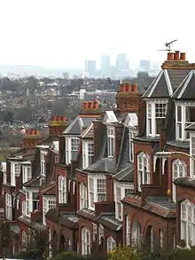 Parallel with Muswell Hill was a track known as St James's Lane which ran across a triangle of wasteland. By the middle of the 19th century houses were already dispersed along the lane at the foot of which was Lalla Rookh, a two-storeyed villa with a wide verandah.[16] Other buildings there were apparently cottages or huts, both single and in terraces.[17]