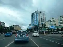 Sanchaung Intersection square is like Yangon version of New York Time Square.[2] There are a lot of advertising billboards including one LCD TV.[3] Dagon centre shopping mall is one of the city’s busiest, located at a junction of Pyay Road and Bargayar Road. The Itwo4 DJ Lounge, Star Mart supermarket and MK Fashion shop dominate the ground floor. Modern branded shoes, bags and fabrics are on sale and also snack shops and café in the mall include.[4] Some video production companies often come and shoot at Dagon Centre shopping mall. Myaynigone plaza is between Dagon Centre Shopping Mall and Gamone Pwint shopping centre. City Mart super market is a famous super market in Yangon. Video Production Companies also shoot at City Mart. Gamone Pwint shopping centre is just like Dagon Centre Shopping Mall. Padonemar Park is a small park. An unknown park is not a real park. but it has a fountain and a small pound.[2]