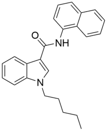 - Sasaki C, Saito T, Shinozuka T, Irie W, Murakami C, Maeda K, et al. (January 2015). "A case of death caused by abuse of a synthetic cannabinoid N -1-naphthalenyl-1-pentyl-1H -indole-3-carboxamide". Forensic Toxicology. 33 (1): 165–169. doi:10.1007/s11419-014-0246-5.