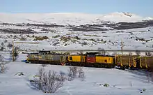 During the late 1980s, the Norwegian State Railways sought a new locomotive type to replace its aging fleet of Di 3 diesel-electric locomotives, which made up the back-bone of the dieselized operations. The new locomotives were planned for use as freight and passenger trains on the Nordland Line, and to a lesser extent on the Røros Line.[2] In 1980, NSB had taken delivery of five Di 4 from Henschel.[3] Originally there were plans to order additional Di 4 units, but this was discarded and instead a new class was pursued,[4] as NSB wanted similar, but slightly more modern, locomotives.[2]