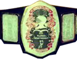 The NWA Florida Heavyweight Championship was a major title in Championship Wrestling from Florida, USA and is now the major title in NWA Florida Wrestling Alliance. It started in 1937 and was abandoned in 1949. It was picked back up in 1966 by CWF and lasted until 1987 when the company was purchased by Jim Crockett Promotions. In 1988, the newly created Florida Championship Wrestling (FCW), soon renamed Pro Wrestling Federation (PWF), picked it back up in 1988 and it continued its lineage through NWA Florida, until they ceased operations in 2006.[1] In 2009, Pro Wrestling Fusion revived the title until they left the NWA in 2011. For several months in 2012, a new Championship Wrestling from Florida affiliated with the NWA, briefly reviving the title until NWA Florida Underground Wrestling took over the championship.
