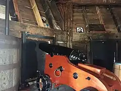 The Bastion's second floor was home to Nanaimo's arsenal. On this floor, two four-pound and two six-pound carronades were held. The cannons were brought over by the Hudson's Bay Company in 1853, when the Bastion was being constructed. Guns, ammunition and additional firing supplies were also stored here. While the purpose of the Bastion and cannons were for defense, there was never an instance where they had to be used for that purpose. Instead, the cannons were only fired in welcoming ceremonies when dignitaries were sailing into the harbour.