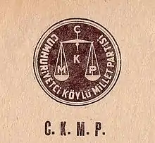 On October 17, 1958, the Peasants' Party of Turkey merged with the Republican Nation Party to form the Republican Peasants' Nation Party (Cumhuriyetçi Köylü Millet Partisi - CKMP). On June 12, 1960, following the May 27 coup d’état, the junta, dubbed the "National Unity Committee", dissolved the parliament and on June 13, closed the district organizations of all political parties.[1] In 1961, when the civil parliamentary system was once again in effect, on October 15, general elections were held, at which the Republican Peasants’ Nation Party received 14% of the votes to emerge as the third party and win 54 seats in the parliament and 16 senators. When the Justice Party emerged victorious at the 1963 elections, Osman Bölükbaşı, together with 28 MPs, resigned from CKMP to establish once more the Nation Party and be elected its president.[2]
