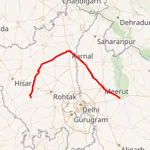 Haryana Border - Shamli - Budhana - Meerut - Garhmukteshwar.[1][2]